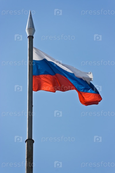 Национальный флаг России на фоне неба