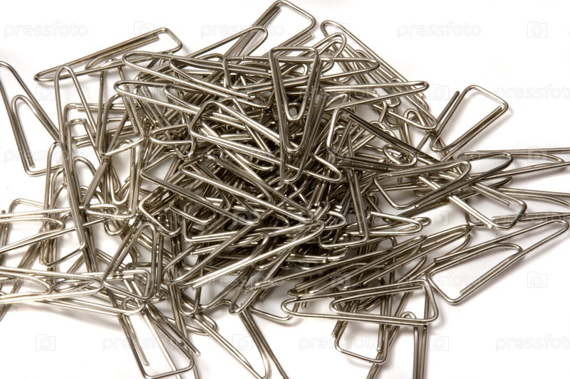 Куча скрепок на белом фоне