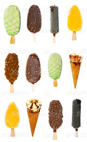 Набор разного мороженого на белом фоне