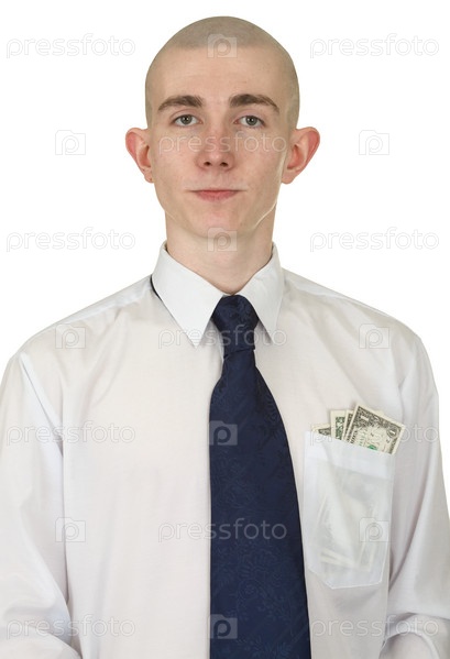 Мужчина в белой рубашке с деньгами в кармане