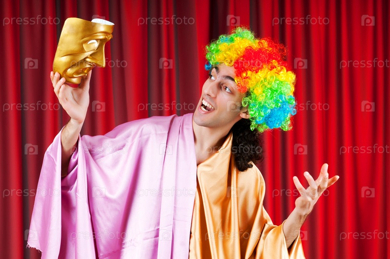 Актер в ярком парике и с маской