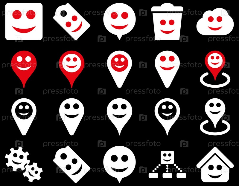 Инструменты, эмоции, улыбки, карта маркеры значков
