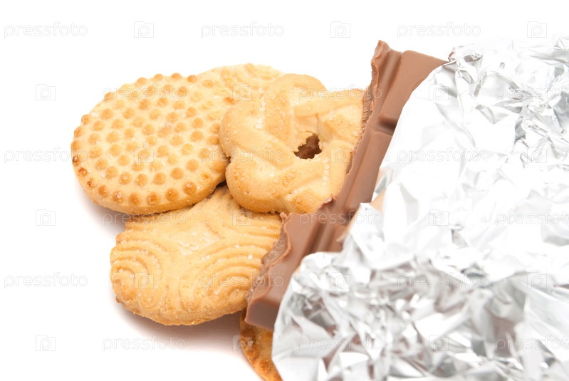 Разные печенья и плитка шоколада