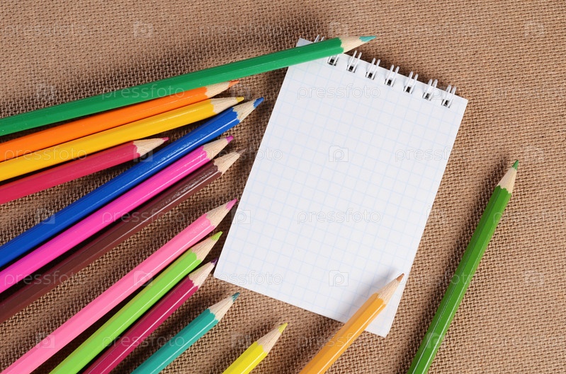 Цветные карандаши и блокнот
