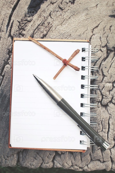 Пустой Блокнот и ручка с крестом