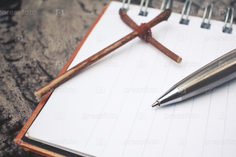 Пустой Блокнот и ручка с крестом