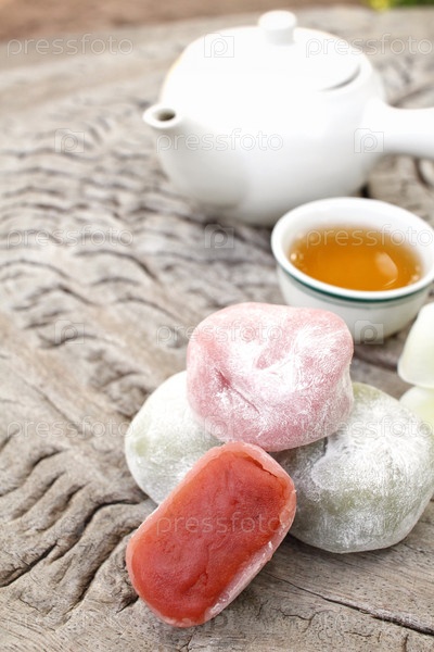 Японский десерт с горячим чаем