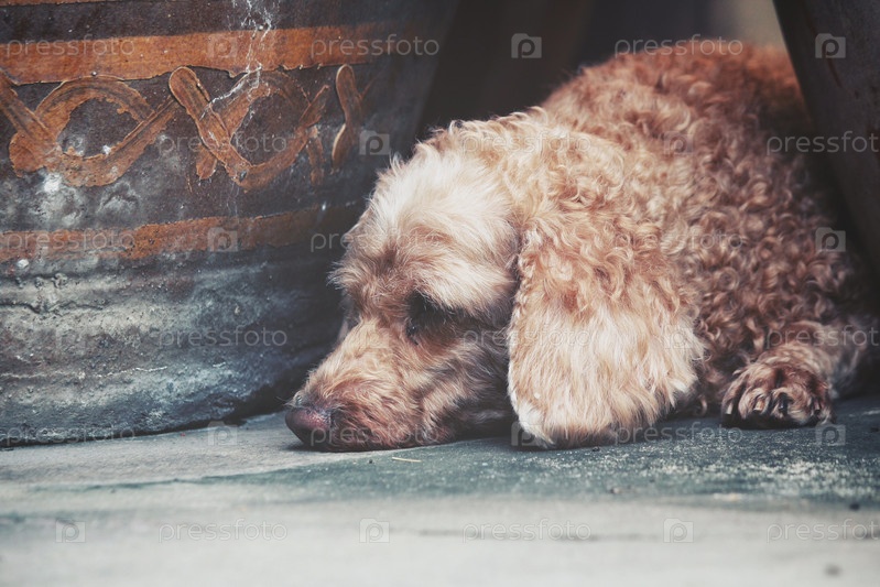 Пудель собака спит