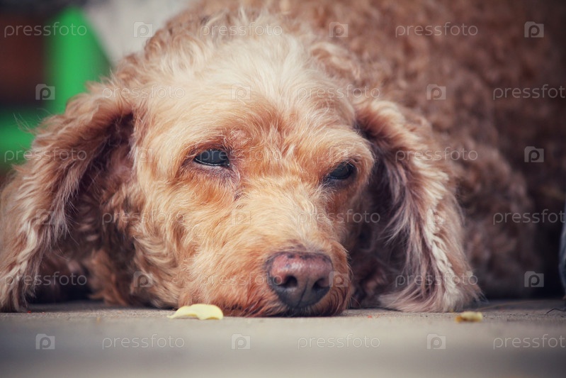 Пудель собака спит