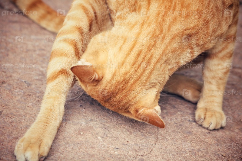 Кошка вылизывается