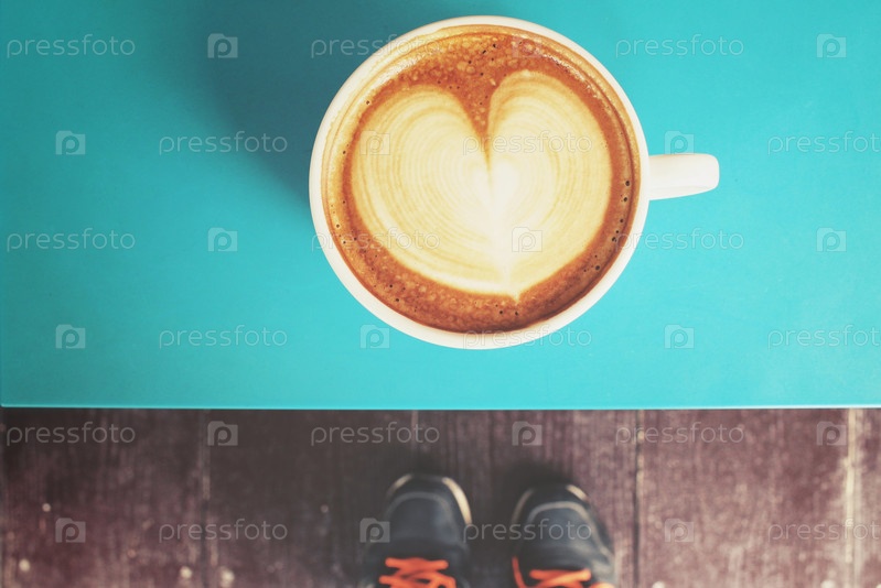 Селфи с кофе с обувью