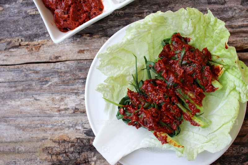 Зеленый лук кимчи корейских продуктов питания