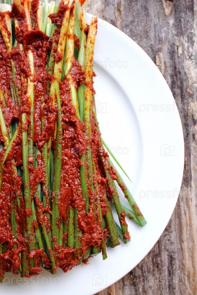 Зеленый лук кимчи корейских продуктов питания