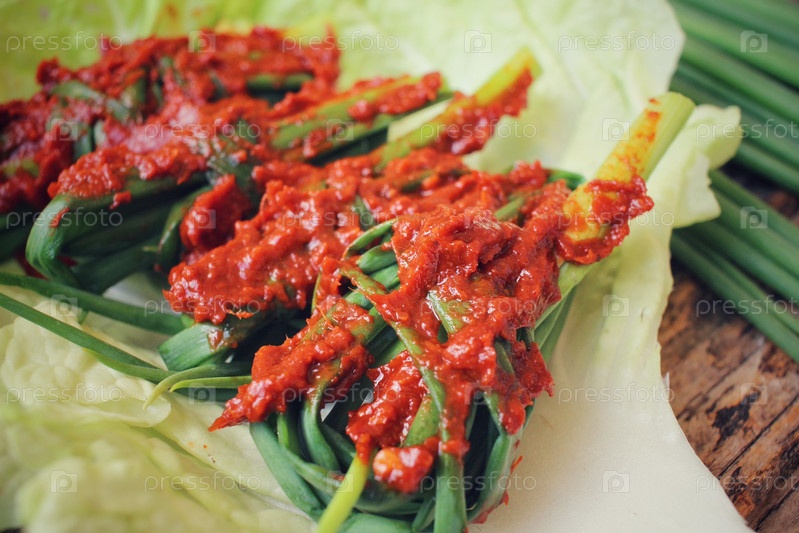 Зеленый лук кимчи корейских продуктов питания