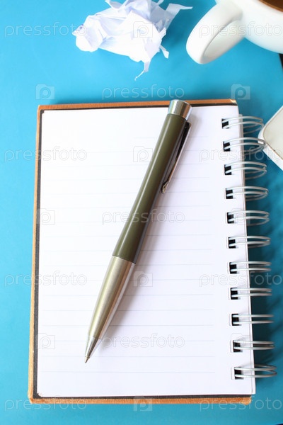 Пустой Блокнот и ручка на офисном столе