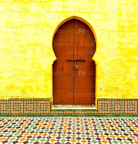 Исторические в античном здании дверь Марокко стиль Африке дерева и металла, ржавые