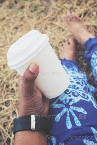 Селф бумаги кофе с стороны с ног