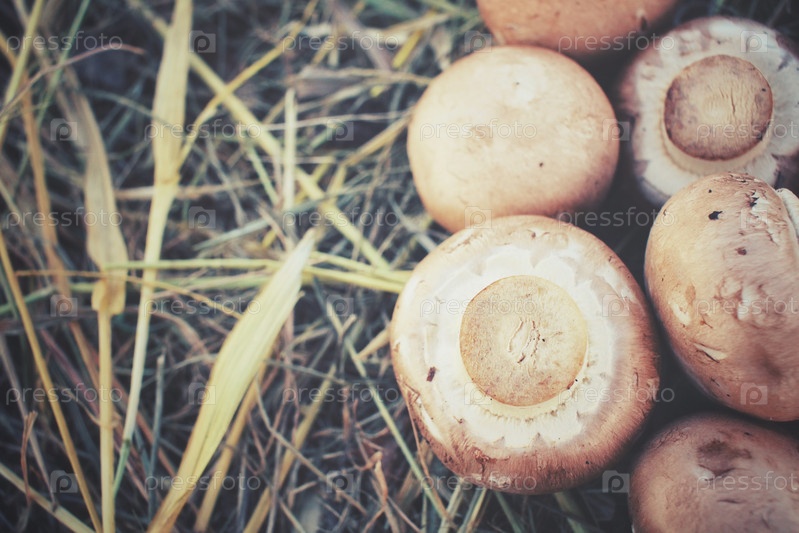 Грибы шампиньоны на сушеные травы