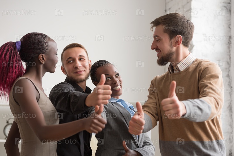 Веселый бизнес-группы, дает большие пальцы руки