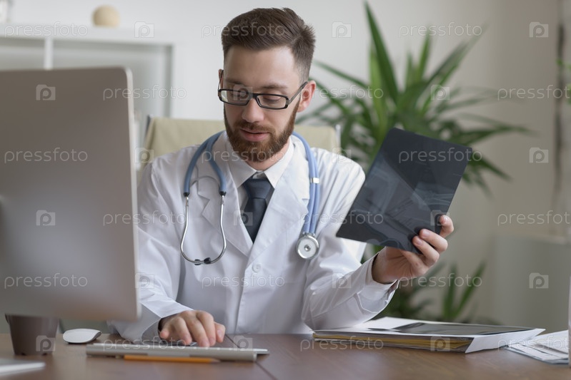 Доктор, изучение рентгеновской локоть