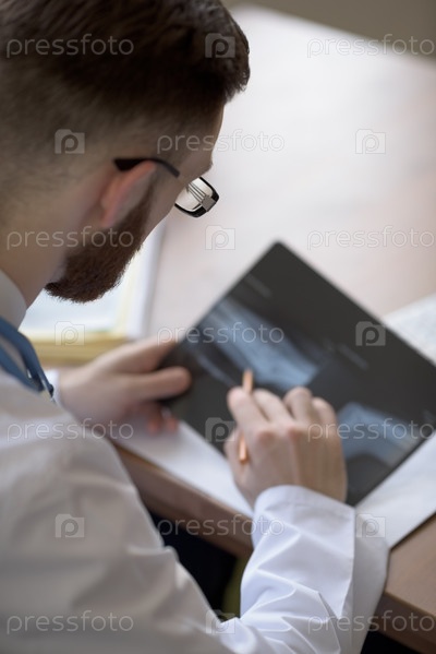 Доктор, изучение рентгеновской локоть