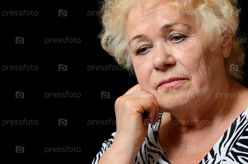 Пожилая женщина на черном фоне