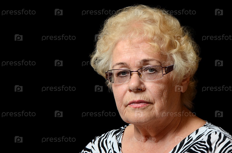 Пожилая женщина на черном фоне