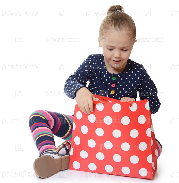 Маленькая девочка с пакетами, изолированные