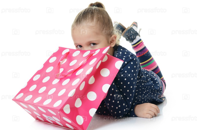 Маленькая девочка с пакетами, изолированные