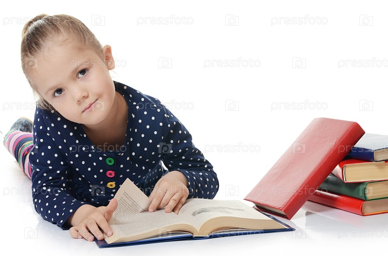 Девочек читать книгу, изолированные на белом фоне