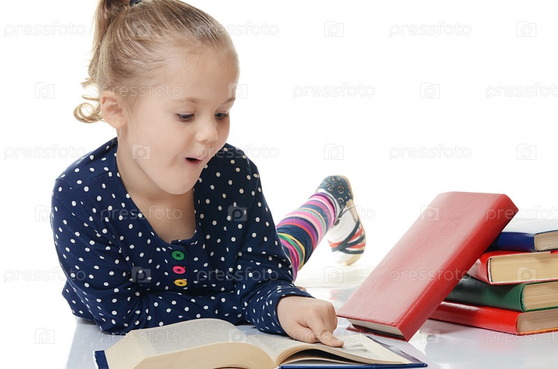Девочек читать книгу, изолированные на белом фоне