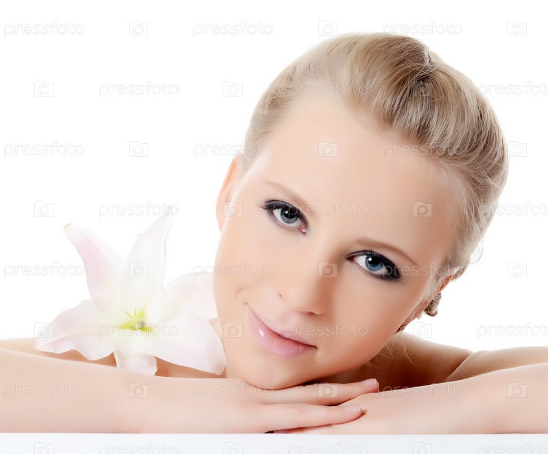 Красивая блондинка с цветок лилии
