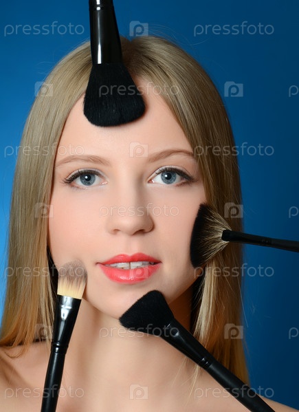 Красивая девушка с макияж кисти