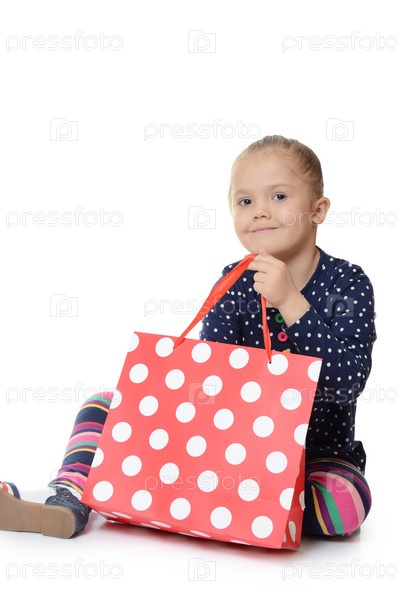 Маленькая девочка с пакетами, изолированные