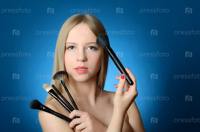 Красивая девушка с макияж кисти