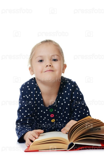 Девочек читать книгу, изолированные на белом фоне
