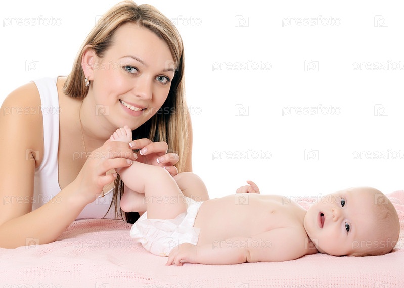 Счастливая мать с ребенком, изолированные на белом фоне