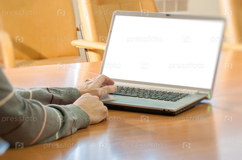 Крупным планом руки на ноутбуке