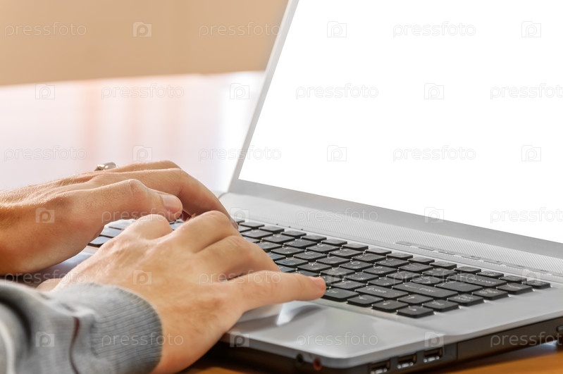 Крупным планом руки на ноутбуке