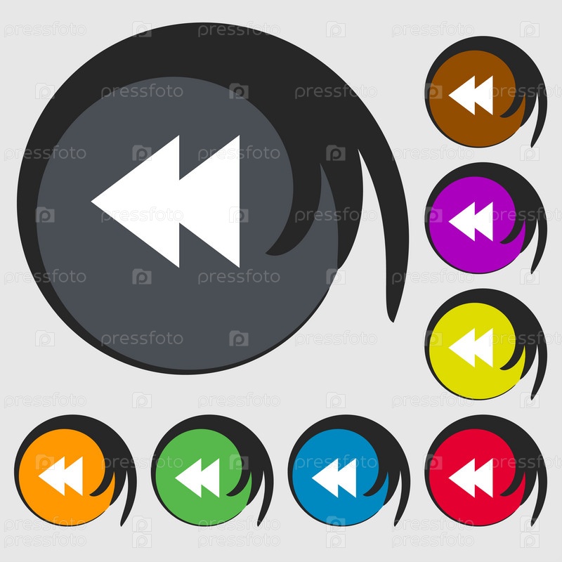 Значок мультимедийного знака. Символ навигации игрока. Символы на восьми цветных кнопок. Вектор