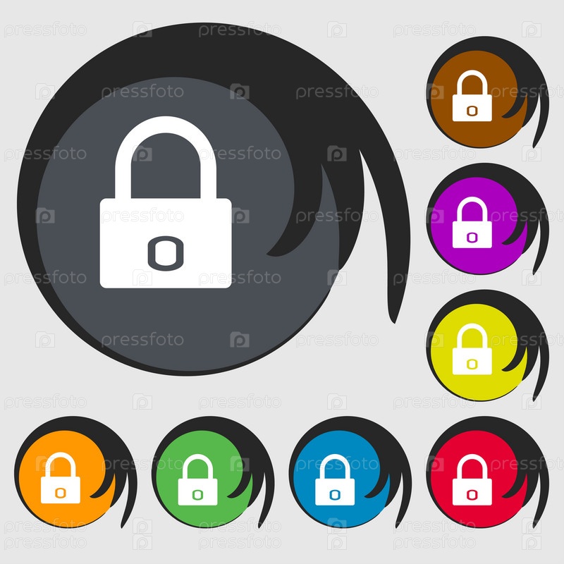 Значок замка знак. Локера символ. Символы на восьми цветных кнопок. Вектор