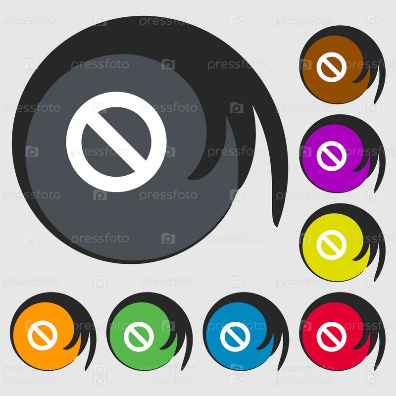 Иконка Стоп знак. Запрет на символ. Символы на восьми цветных кнопок. Вектор