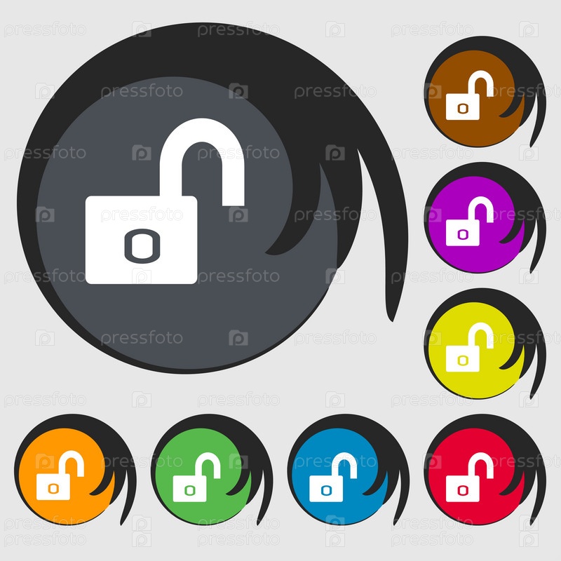 Значок замка знак. Локера символ. Символы на восьми цветных кнопок. Вектор