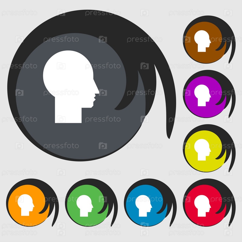 Иконка Пользователь знак. Символ человека. Символы на восьми цветных кнопок. Вектор