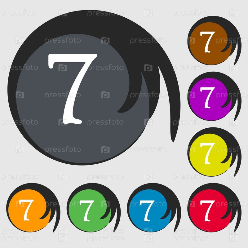 Число семь значок знак. Символы на восьми цветных кнопок. Вектор