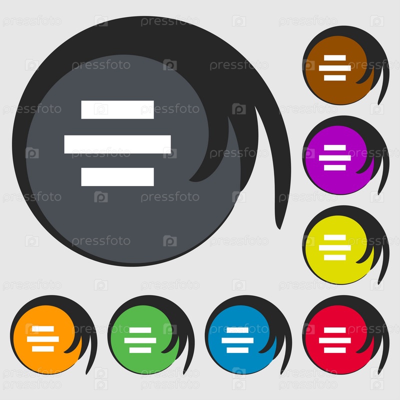 Центр выравнивание значок знак. Символы на восьми цветных кнопок. Вектор