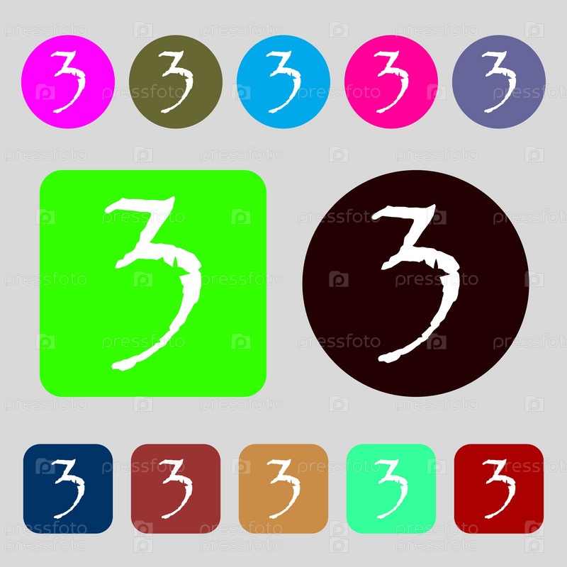 Третье место знак премии. Победитель символ. Шаг 3. 12 цветных кнопок. Плоский дизайн. Вектор