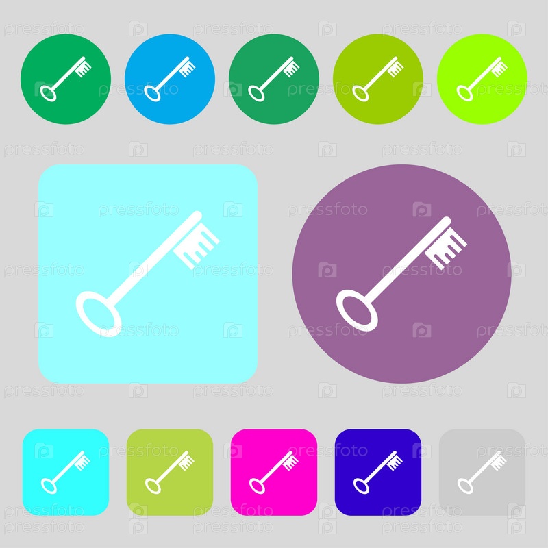 Значок ключа знак. 12 цветных кнопок. Плоский дизайн. Вектор