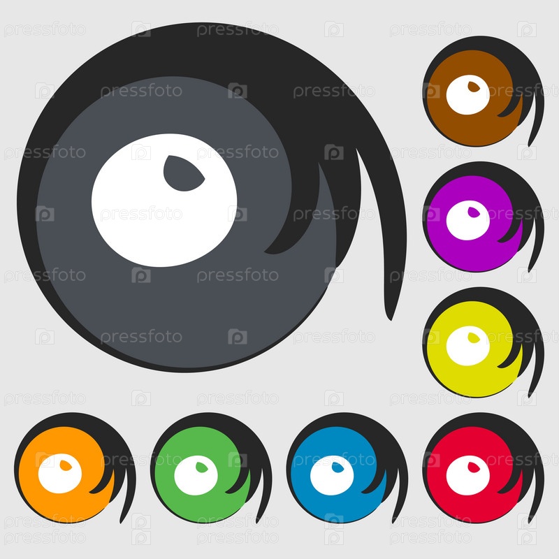 Число ноль значок знак. Символы на восьми цветных кнопок. Вектор