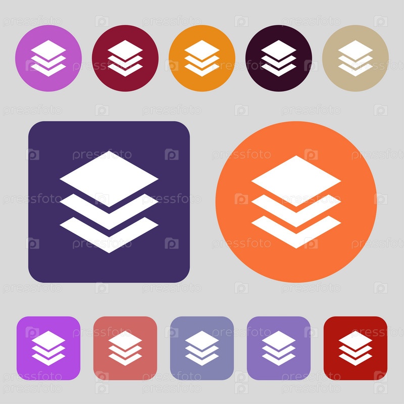 Слои значок знак. 12 цветных кнопок. Плоский дизайн. Вектор